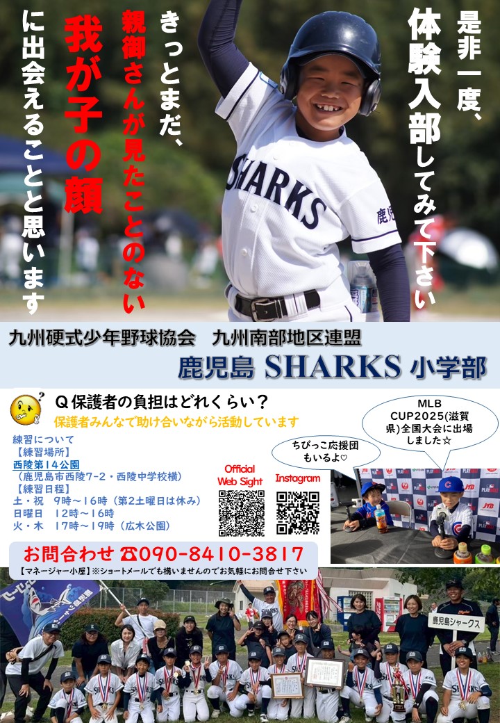 鹿児島シャークスのかあちゃんたちがお送りする父母会だよりです。お気楽に読んでやって下さい。